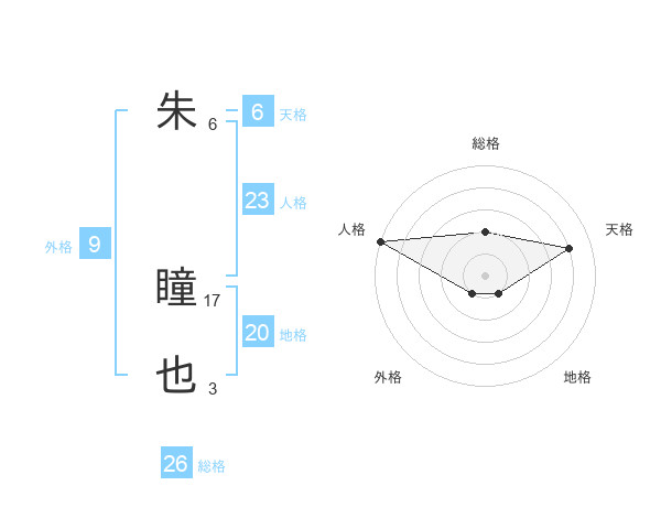 朱 瞳也さんを姓名の画数から五運を鑑定