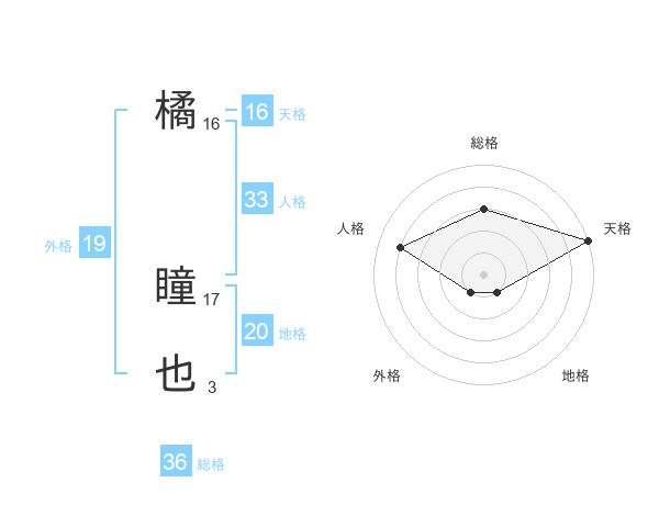 橘 瞳也さんの総格は36画の3点!