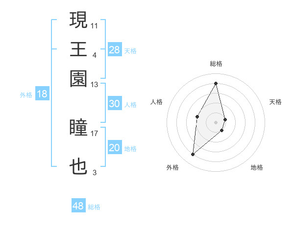 現王園 瞳也さんの天格は28画の1点!