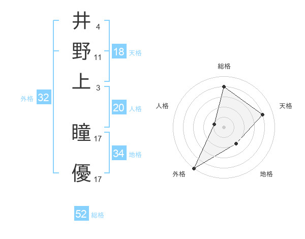 井野上 瞳優さんを姓名の画数から五運を鑑定