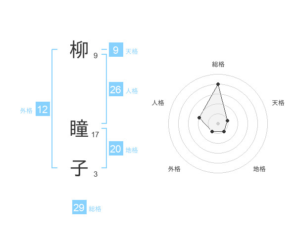 柳 瞳子さんの総格は29画の4点!