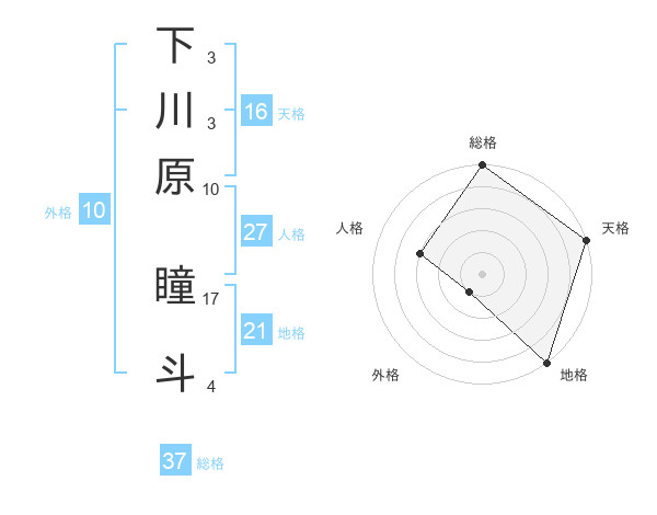 下川原 瞳斗さんを姓名の画数から五運を鑑定