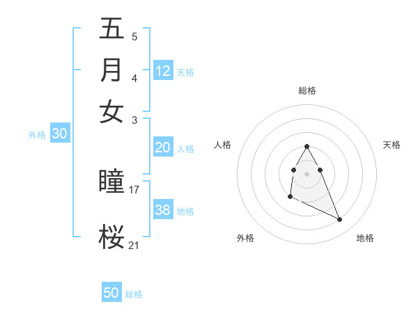 五月女 瞳桜さんの総格は50画の2点!