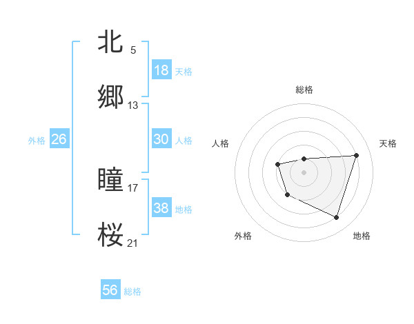 北郷 瞳桜さんを姓名の画数から五運を鑑定