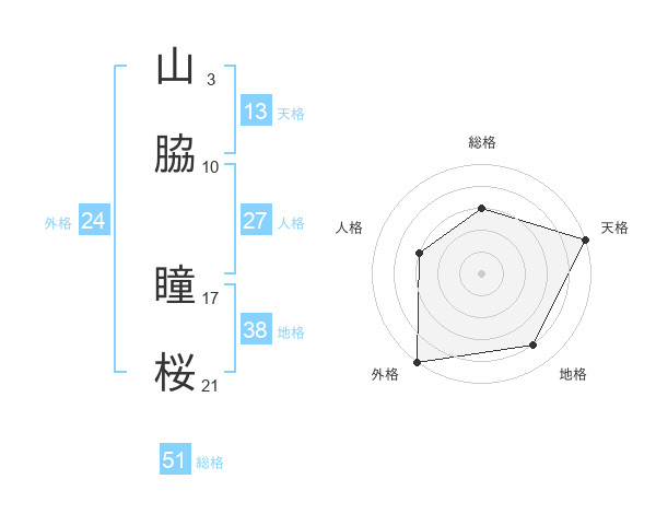 山脇 瞳桜さんを姓名の画数から五運を鑑定