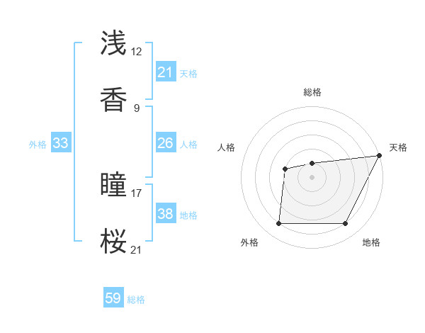 浅香 瞳桜さんを姓名の画数から五運を鑑定