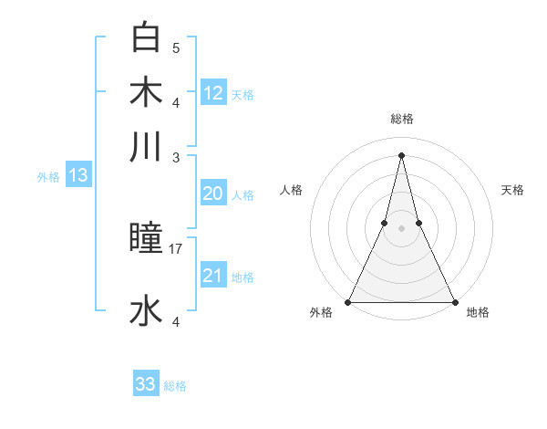 白木川 瞳水さんを姓名の画数から五運を鑑定
