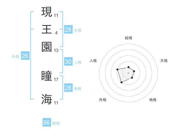 現王園 瞳海さんの総格は56画の1点!
