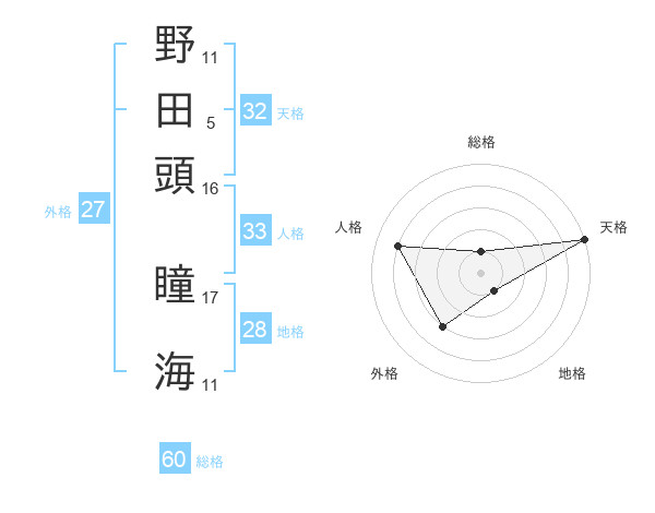 野田頭 瞳海さんを姓名の画数から五運を鑑定