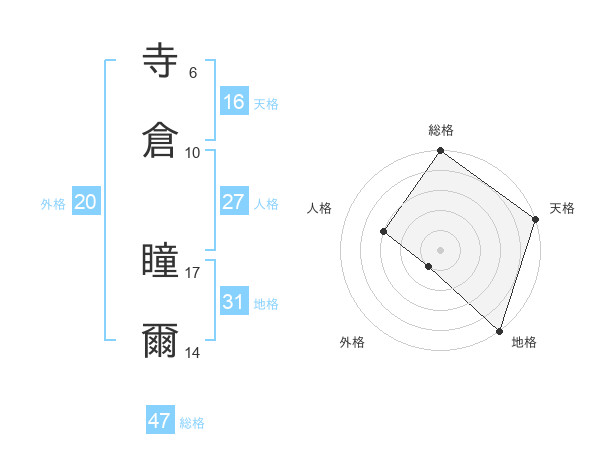 寺倉 瞳爾さんを姓名の画数から五運を鑑定