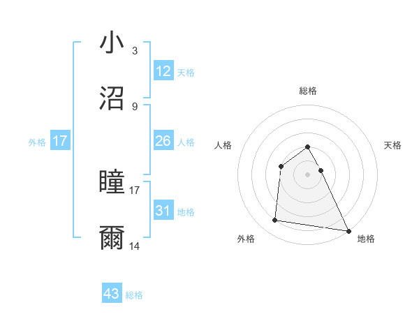 小沼 瞳爾さんの外格は17画の4点!