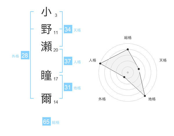 小野瀬 瞳爾さんを姓名の画数から五運を鑑定