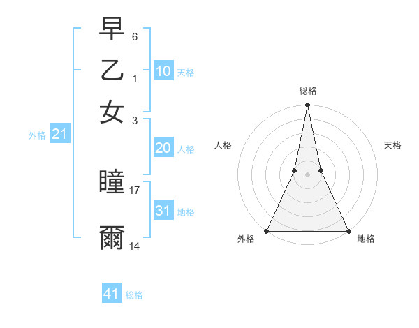 早乙女 瞳爾さんを姓名の画数から五運を鑑定