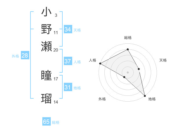 小野瀬 瞳瑠さんの総格は65画の4点
