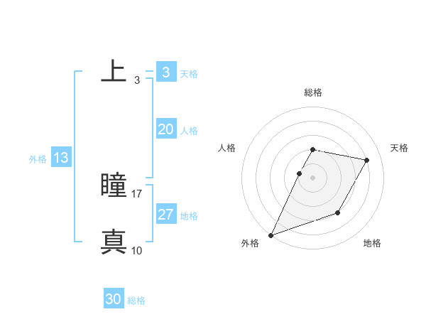 上 瞳真さんの外格は13画の5点!
