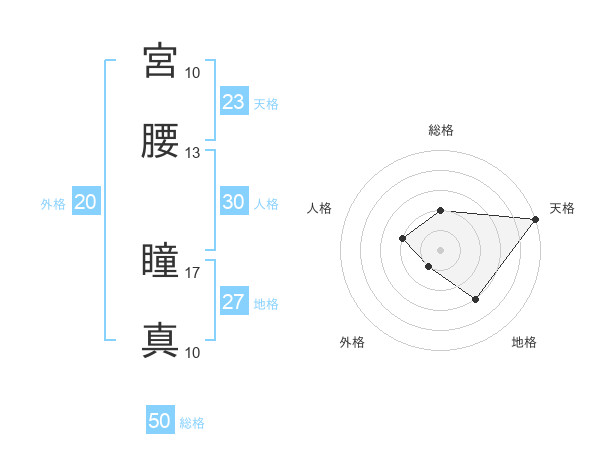 宮腰 瞳真さんの総格は50画の2点!