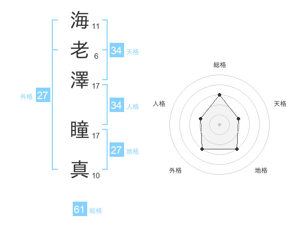 海老澤 瞳真さんの総格は61画の3点!