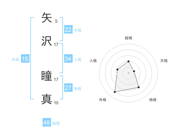 矢沢 瞳真さんを姓名の画数から五運を鑑定