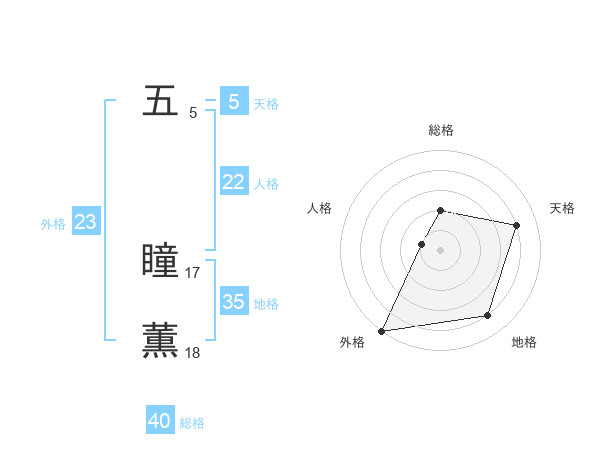五 瞳薫さんを姓名の画数から五運を鑑定