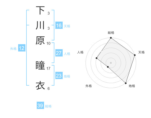 下川原 瞳衣さんを姓名の画数から五運を鑑定