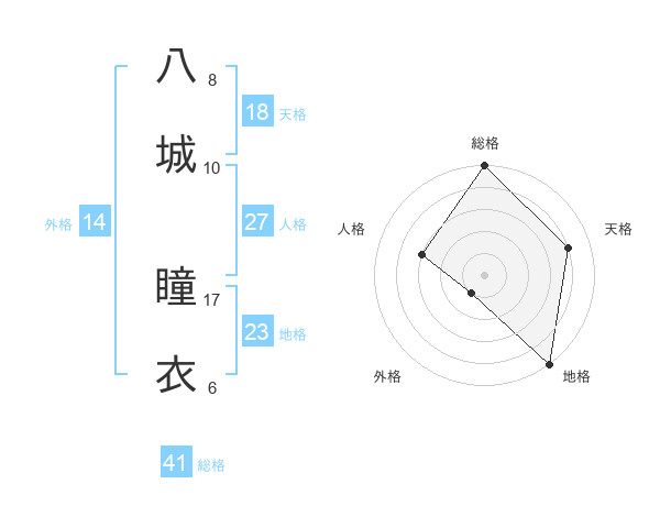 八城 瞳衣さんを姓名の画数から五運を鑑定