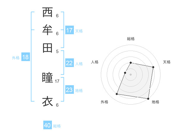 西牟田 瞳衣さんを姓名の画数から五運を鑑定