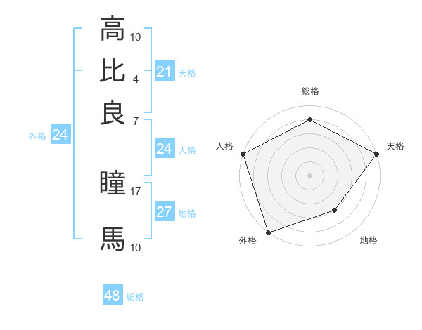 高比良 瞳馬さんを姓名の画数から五運を鑑定