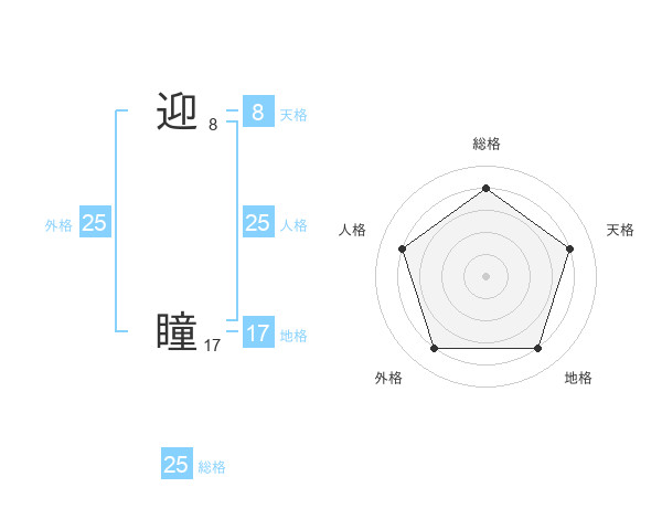 迎 瞳さんの外格は25画の4点!