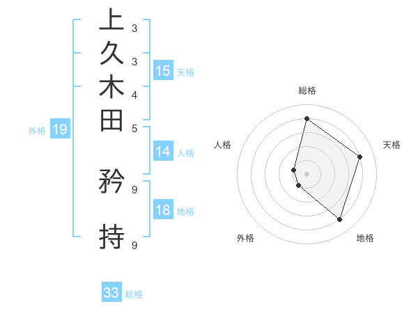 上久木田 矜持さんを姓名の画数から五運を鑑定