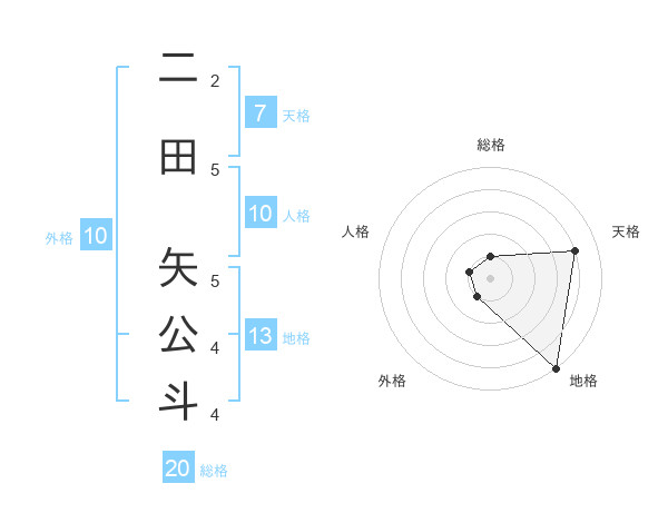 二田 矢公斗さんの総格は20画の1点!