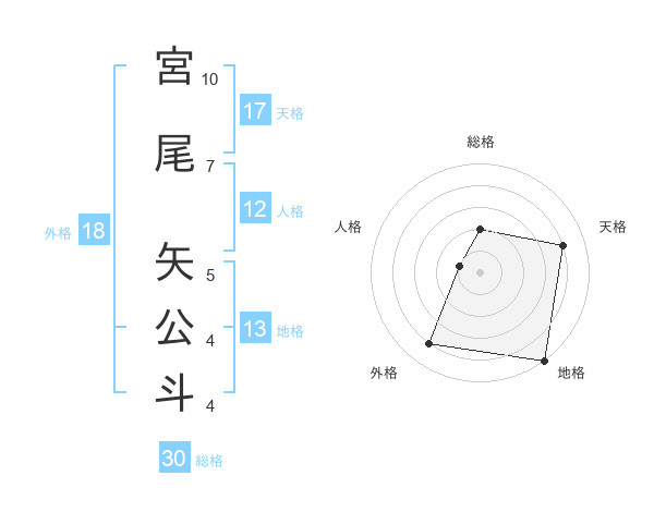 宮尾 矢公斗さんを姓名の画数から五運を鑑定