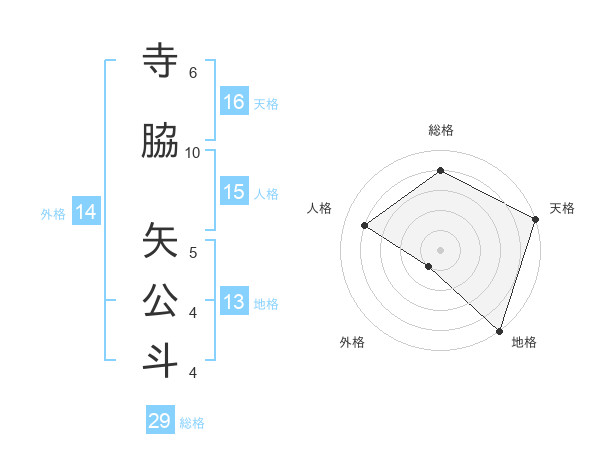 寺脇 矢公斗さんを姓名の画数から五運を鑑定