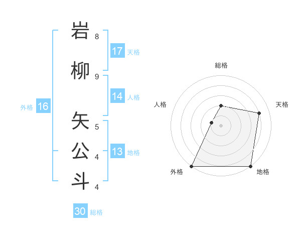 岩柳 矢公斗さんを姓名の画数から五運を鑑定