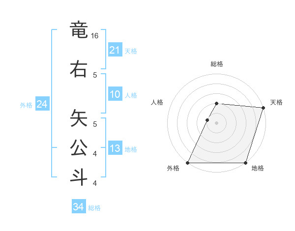 竜右 矢公斗さんを姓名の画数から五運を鑑定