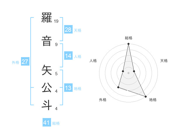 羅音 矢公斗さんを姓名の画数から五運を鑑定