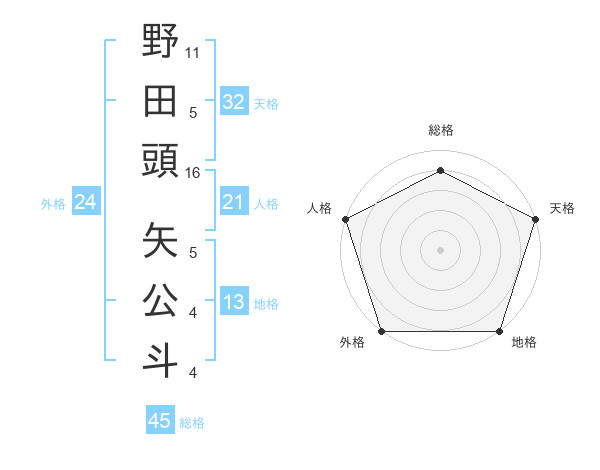 野田頭 矢公斗さんを姓名の画数から五運を鑑定