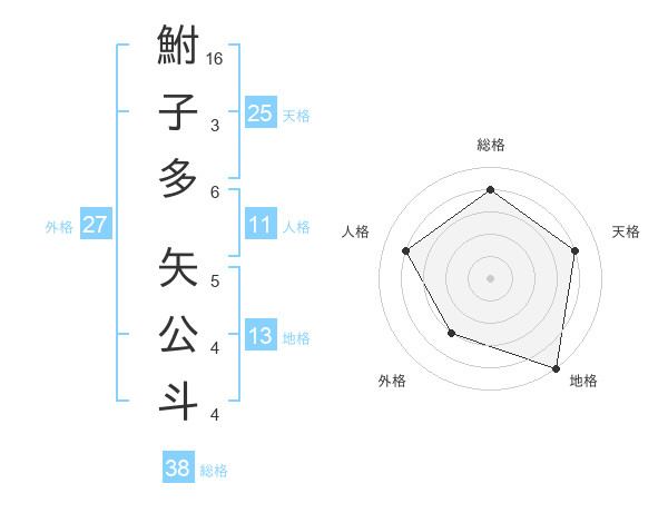鮒子多 矢公斗さんを姓名の画数から五運を鑑定