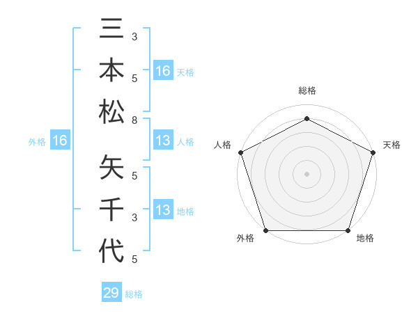 三本松 矢千代さんを姓名の画数から五運を鑑定