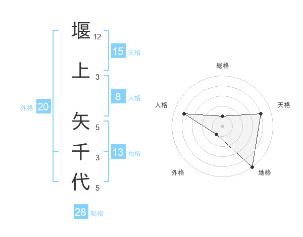 堰上 矢千代さんを姓名の画数から五運を鑑定