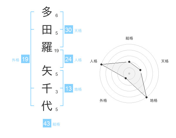 多田羅 矢千代さんを姓名の画数から五運を鑑定