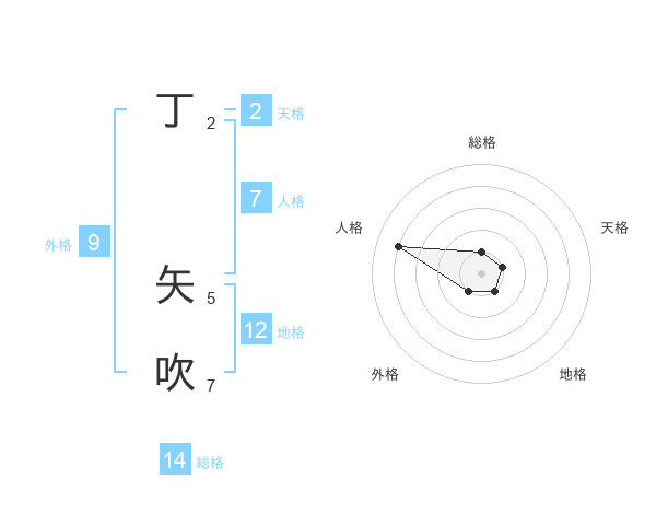 丁 矢吹さんの総格は14画の1点!