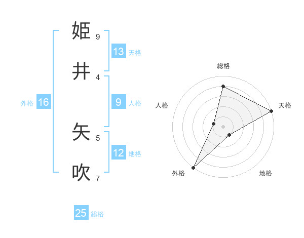 姫井 矢吹さんを姓名の画数から五運を鑑定