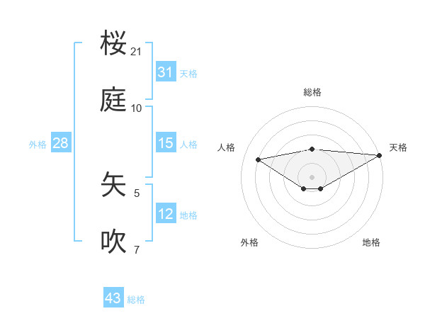 桜庭 矢吹さんの総格は43画の2点!