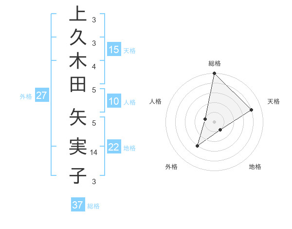 上久木田 矢実子さんを姓名の画数から五運を鑑定