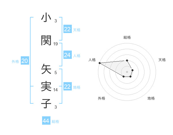 小関 矢実子さんを姓名の画数から五運を鑑定