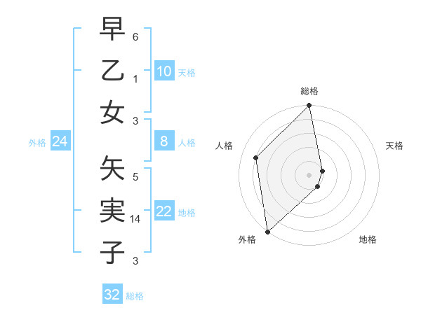 早乙女 矢実子さんの総格は32画の5点!