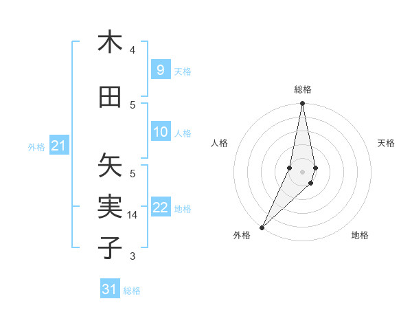 木田 矢実子さんを姓名の画数から五運を鑑定