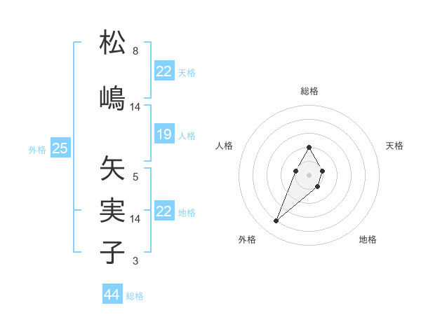 松嶋 矢実子さんの地格は22画の1点!