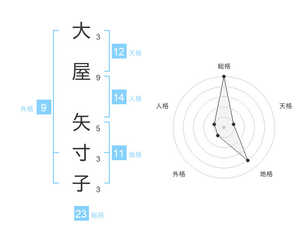 大屋 矢寸子さんを姓名の画数から五運を鑑定