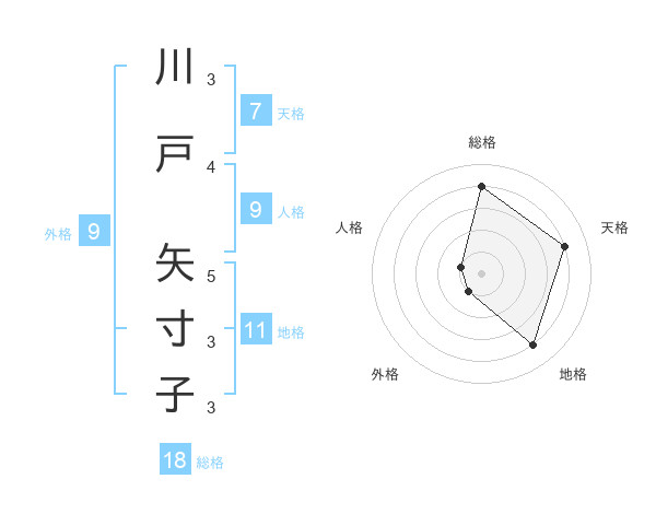 川戸 矢寸子さんの総格は18画の4点!